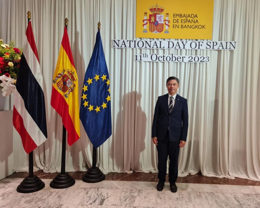 Professor Dr. Pongruk Sribanditmongkol, CMU President, attended the National Day of Spain at Anantara Siam Bangkok Hotel on October 11, 2023. He was welcomed by H.E. Mr. Felipe de la Morena Casado, Ambassador of Spain to Thailand.